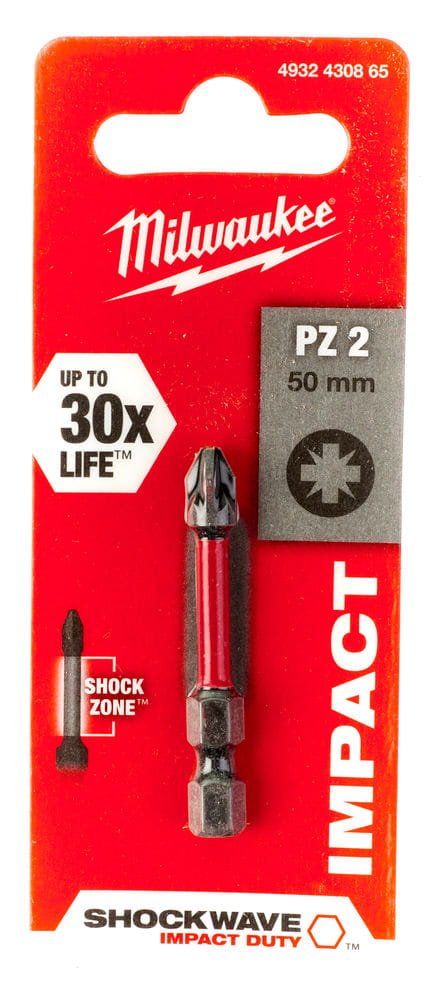 - Stal opracowana na życzenie - Milwaukee ® niestandardowy skład metalu sprawia, że wiertła Shockwave są bardziej odporne na wstrząsy przy uderzeniu.