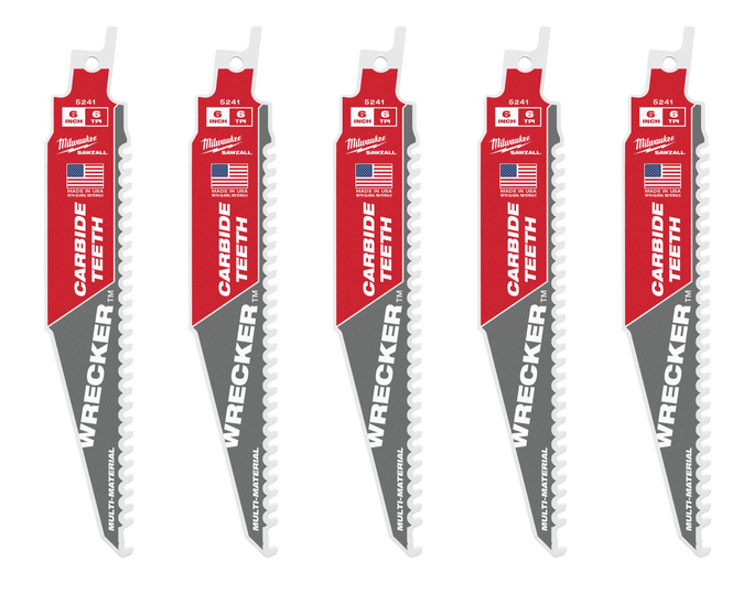 - Brzeszczot z zębami z węglika spiekanego WRECKER™ do cięcia w różnych materiałach umożliwia cięcie grubego metalu, żeliwa, drewna z gwoździami, hartowanych śrub i elementów złącznych.